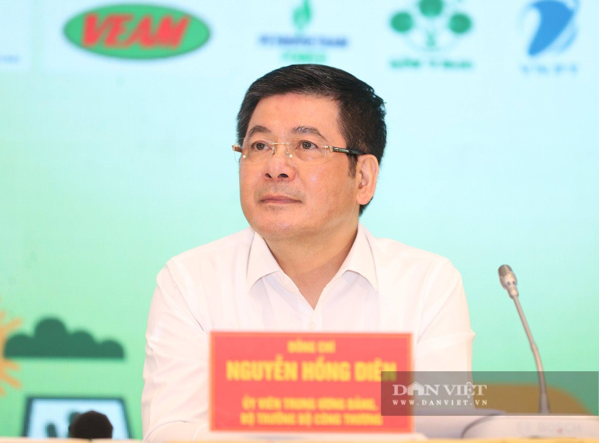 Cũng tại diễn đàn, thay mặt lãnh đạo Bộ Công Thương, Bộ trưởng Nguyễn Hồng Diên trân trọng cảm ơn Hội Nông dân Việt Nam và các Bộ, ngành, địa phương, các Hiệp hội ngành hàng, cộng đồng doanh nghiệp đã luôn ủng hộ, giúp đỡ, chia sẻ, đồng hành với ngành Công Thương trong những năm qua. Ảnh: Phạm Hưng