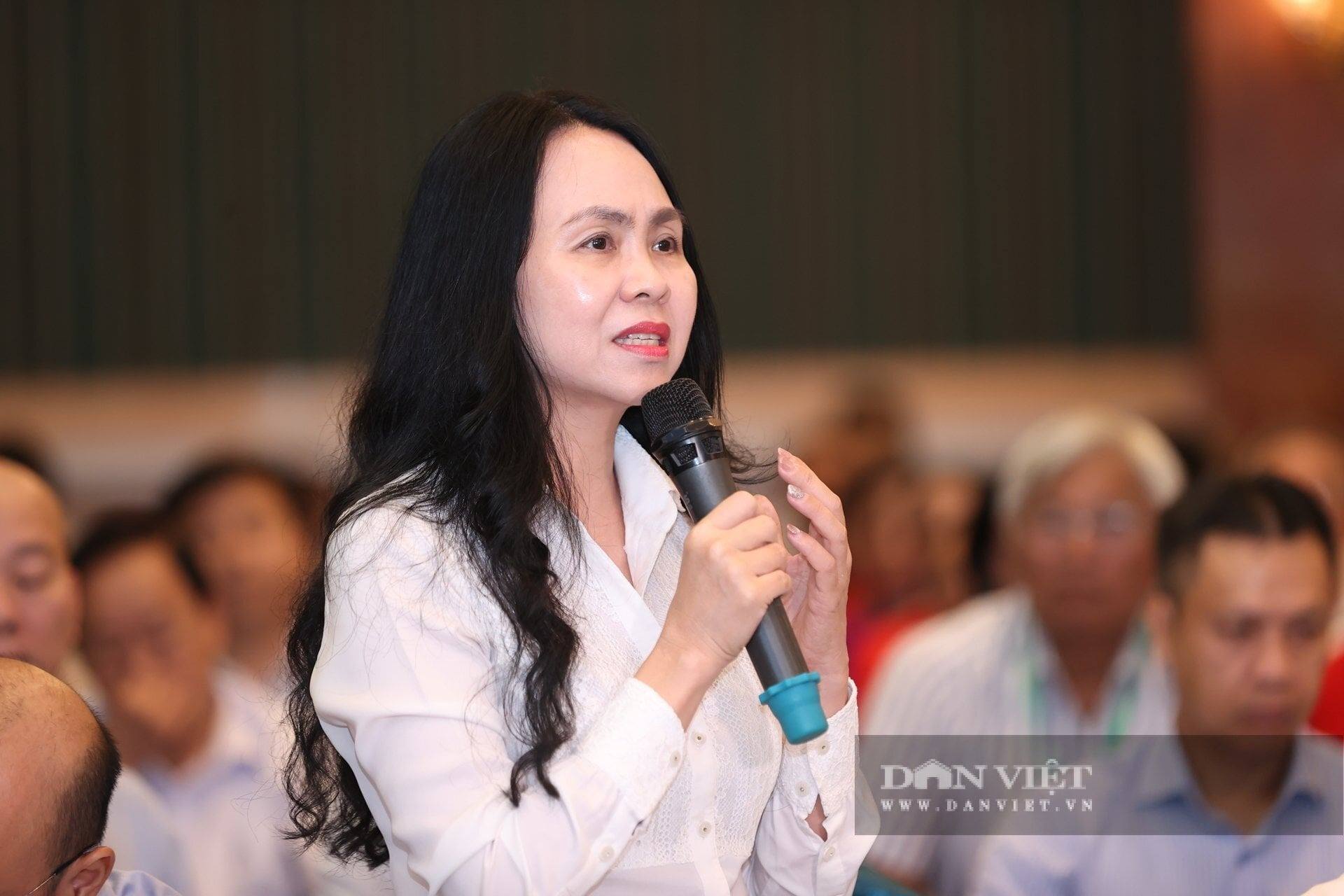 Bà Lê Hoàng Oanh - Cục trưởng Cục Thương mại điện tử và Kinh tế (Bộ Công Thương) trả lời các câu hỏi liên quan đến quảng bá sản phẩm, bán hàng trên không gian mạng, các tiêu chuẩn sản phẩm... Bộ Công Thương không chỉ cung cấp thông tin mà còn trực tiếp xuống địa phương, tổ chức các buổi livestream bán hàng để hỗ trợ nông dân, bà Oanh cho biết thêm. Ảnh: Lê Hiếu