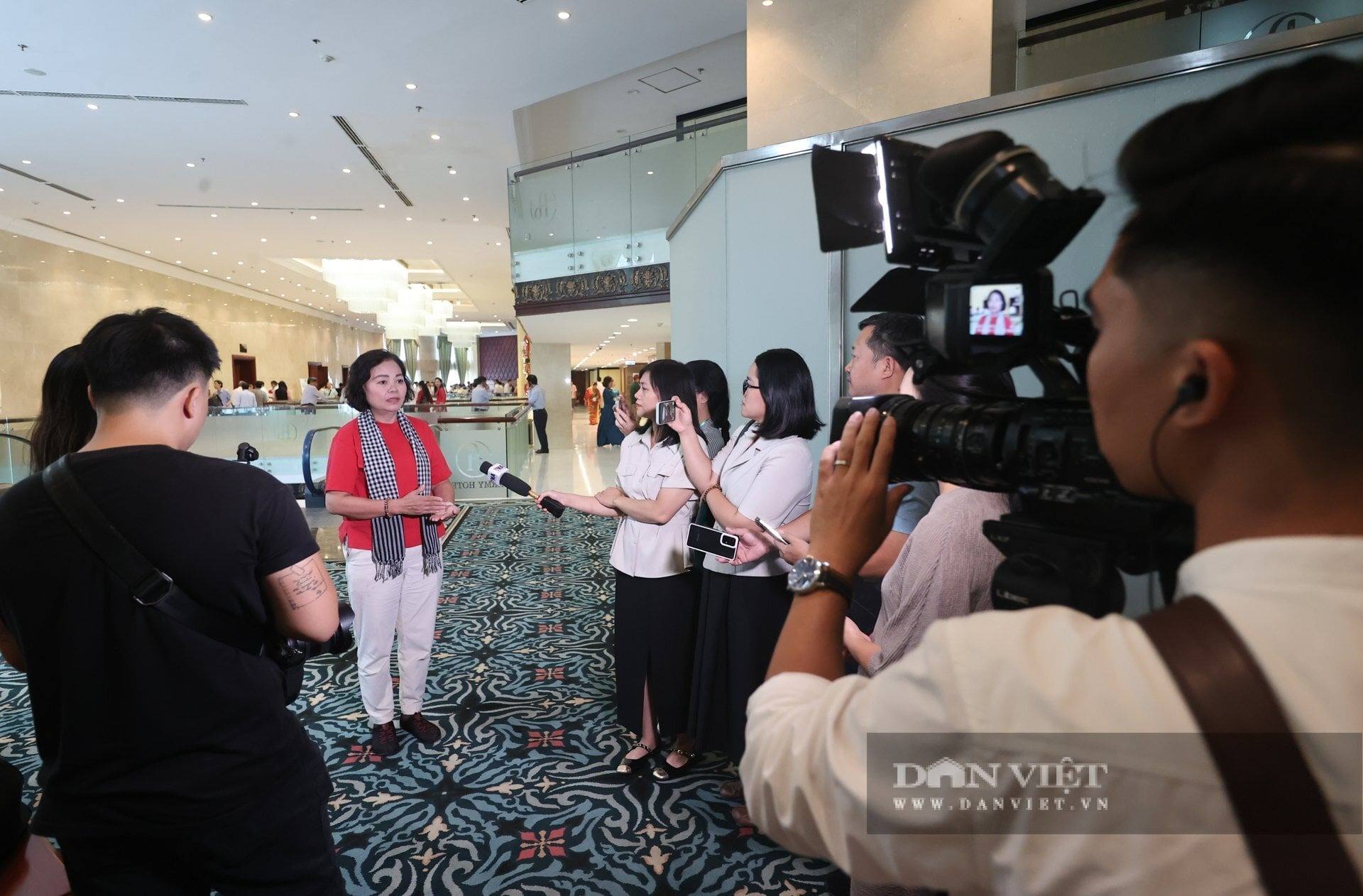 Các đại biểu trả lời báo chí xung quanh bên lề diễn đàn vào hôm nay. Ảnh: Lê Hiếu
