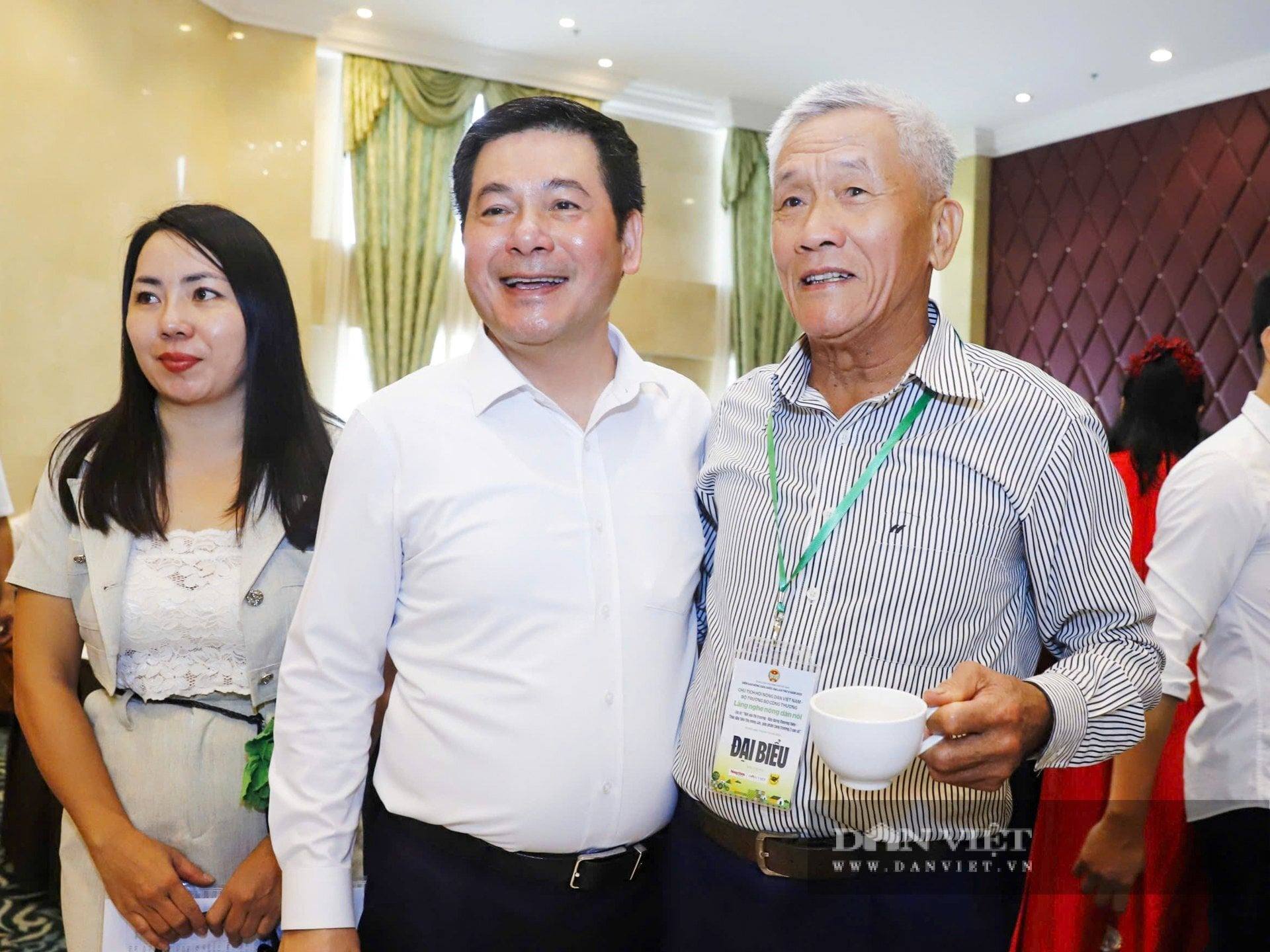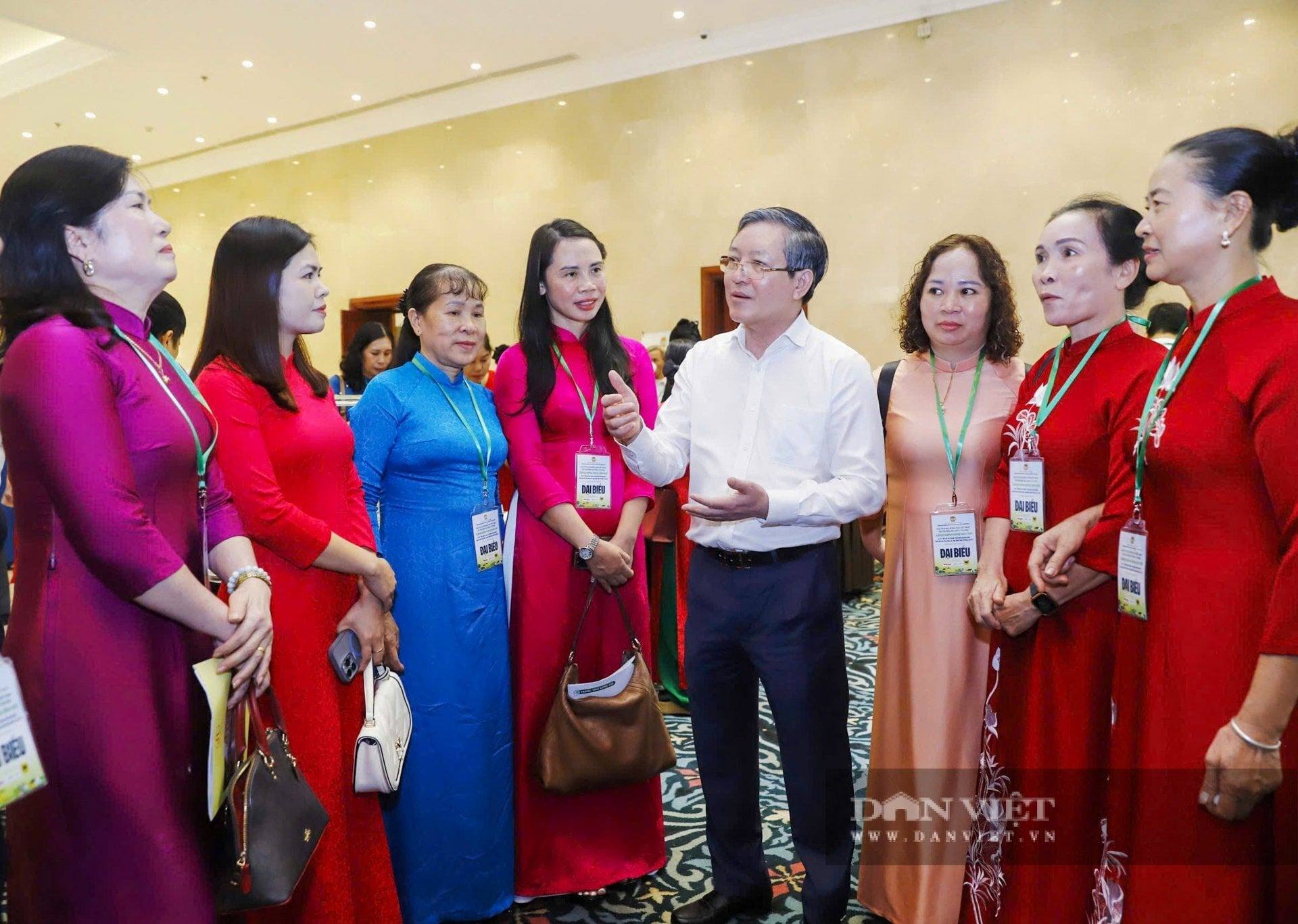 Chủ tịch BCH Trung ương Hội Nông dân Việt Nam Lương Quốc Đoàn trò chuyện cùng các đại biểu trong giờ nghỉ của Diễn đàn. Ảnh: Phạm Hưng
