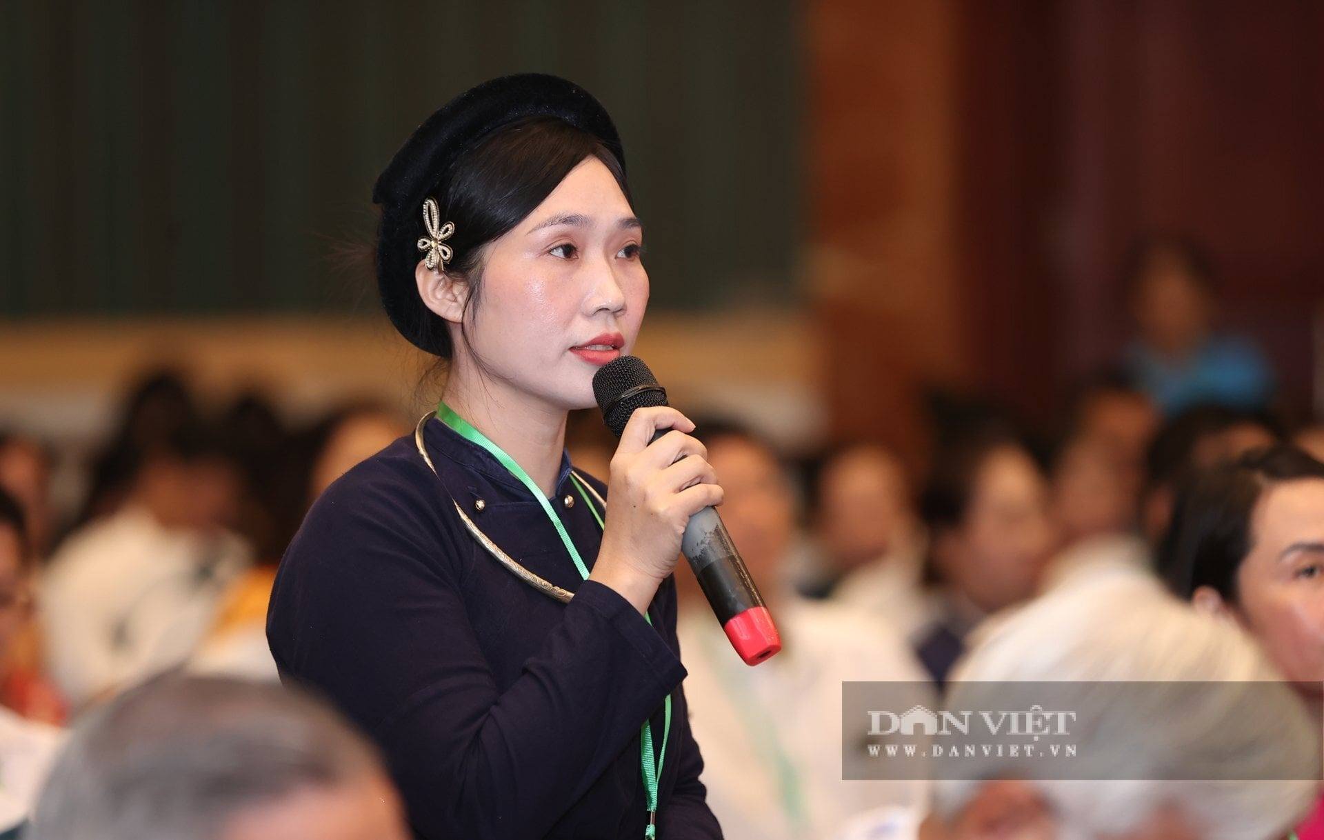 Chị Vương Thị Thương, Nông dân Việt Nam xuất sắc năm 2025 đến từ Lạng Sơn, Giám đốc Hợp tác xã Nông sản Toàn Thương. HTX đã tạo việc làm cho hơn 100 lao động với sản phẩm hồng treo gió, có doanh thu 5 tỷ, lợi nhuận 2,2 tỷ đồng đặt câu hỏi tại diễn đàn: “Xin Bộ trưởng cho biết các giải pháp để đưa các sản phẩm OCOP từ đặc sản địa phương vươn tầm quốc tế, trên các sàn thương mại điện tử?”. Ảnh: Lê Hiếu