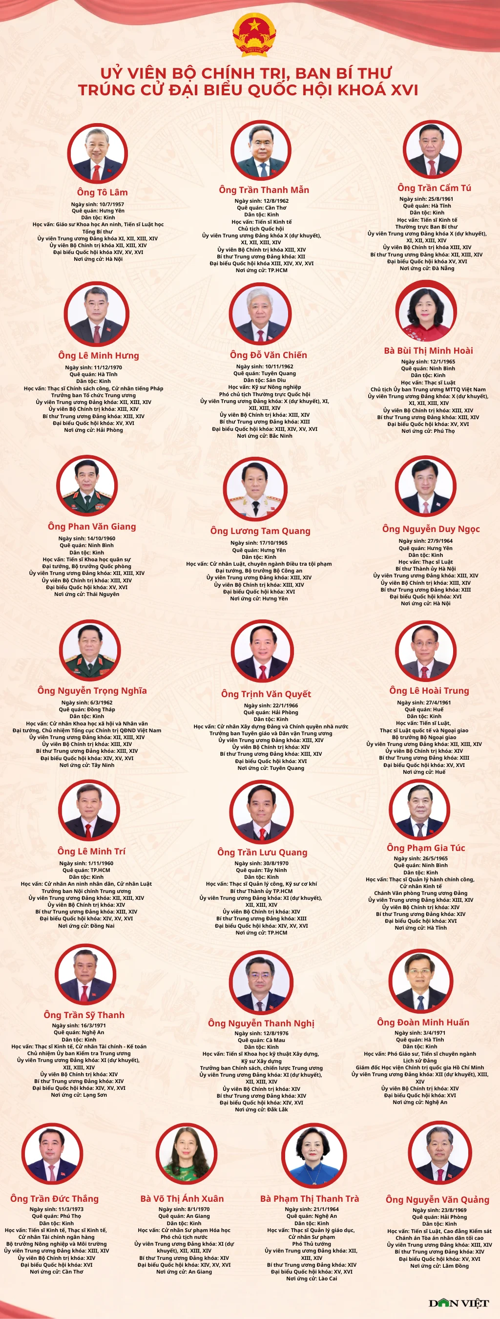 Trong 500 đại biểu Quốc hội khóa XVI vừa được công bố, có Tổng Bí thư Tô Lâm và 21 Ủy viên Bộ Chính trị và Ủy viên Ban Bí thư.
