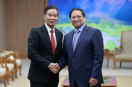 Thủ tướng Phạm Minh Chính tiếp Chủ tịch Ủy ban Trung ương Mặt trận Lào xây dựng đất nước